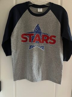 Port Authority Raglan- grey with navy 3/4 sleeves